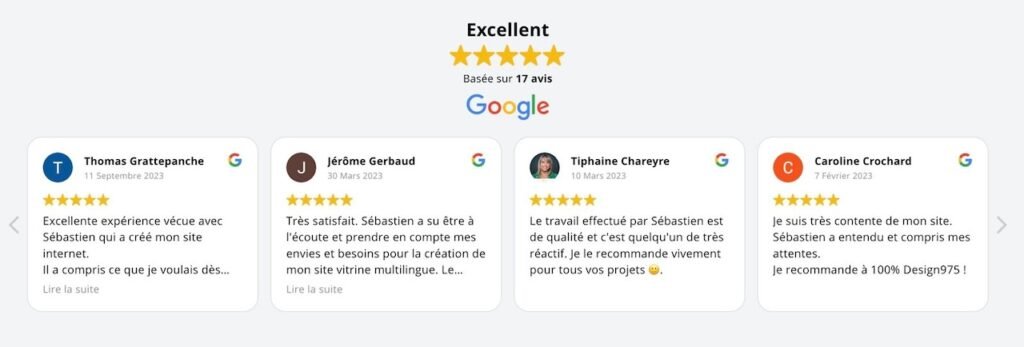 • Témoignages clients : Affichez des témoignages de clients satisfaits avec leurs photos et noms pour plus d’authenticité.