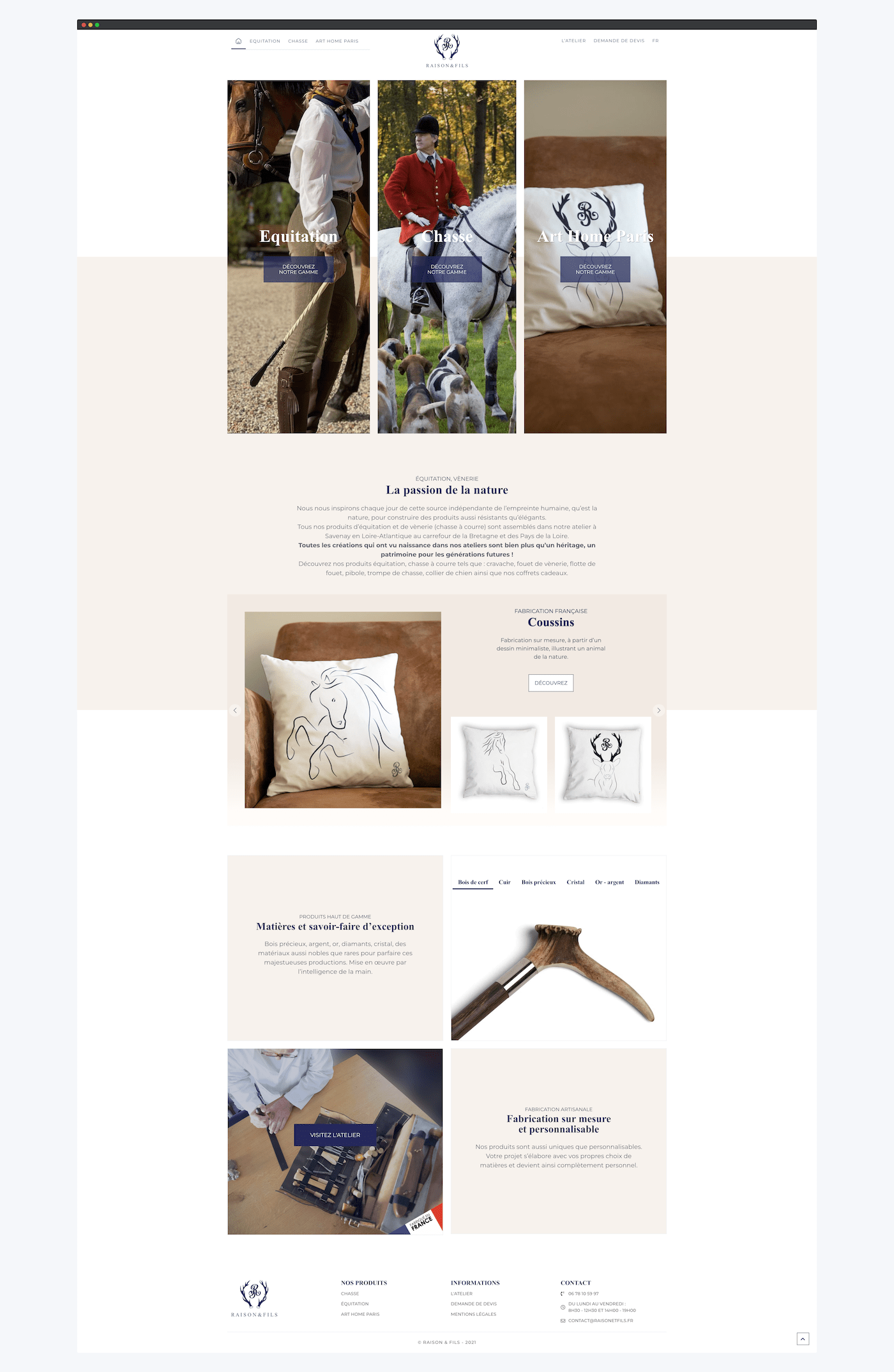 J’ai créer un site vitrine permettant aux visiteurs de découvrir et d’explorer la gamme de produits haut de gamme proposée par Raison & Fils dans les domaines de l’équitation, de la chasse et de l’Art Home Paris.